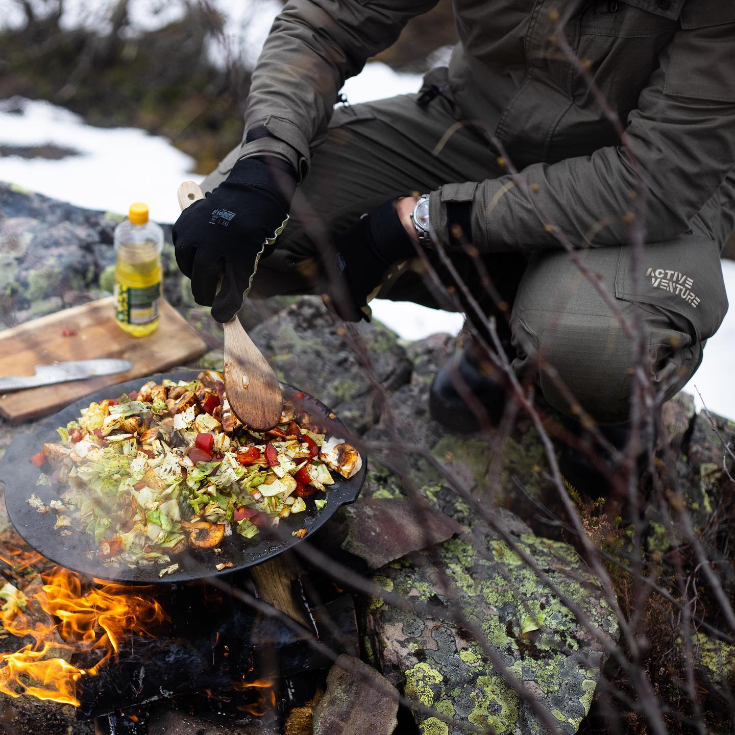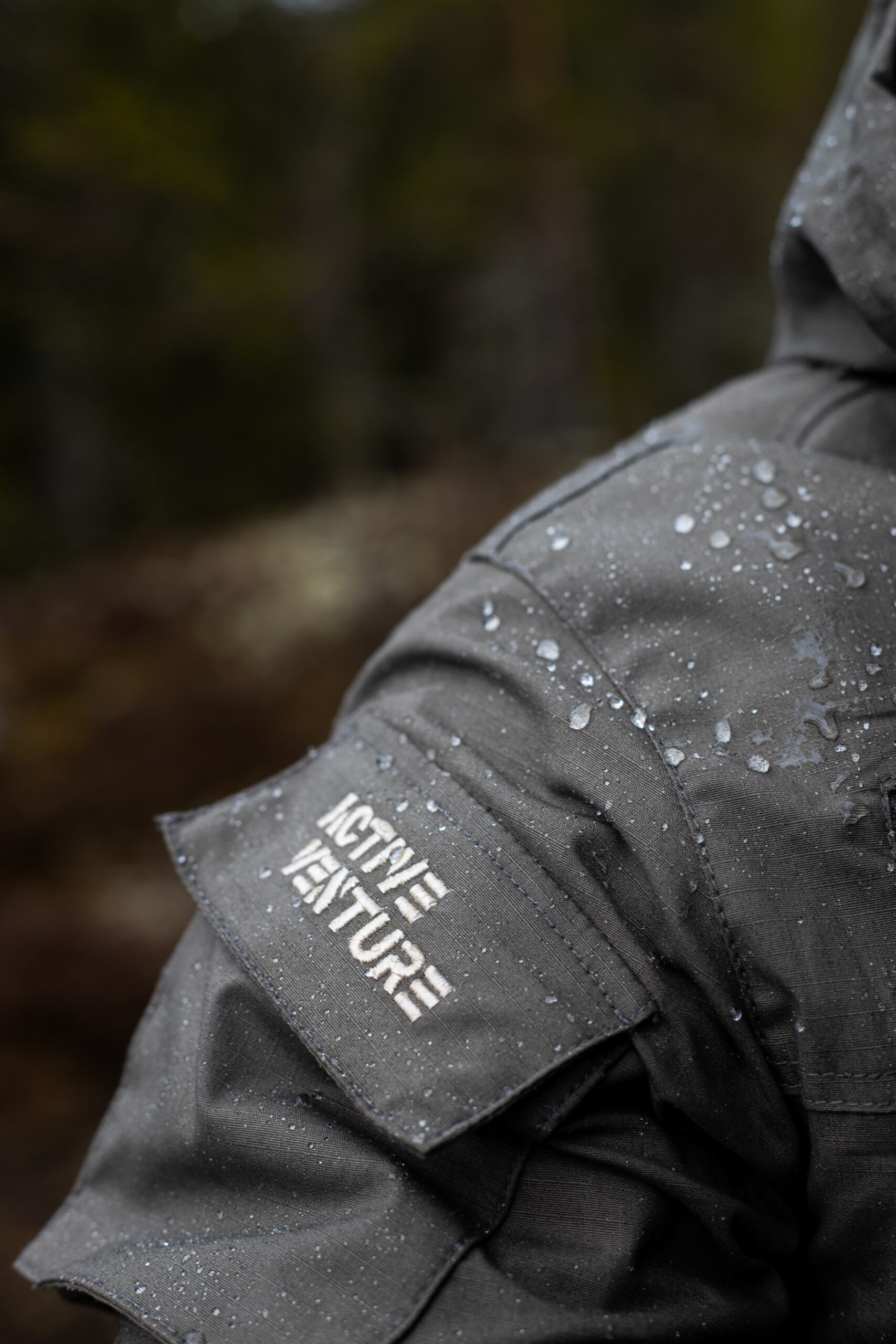-Two pockets placed on the sleeves are opened and closed with Velcro, divided into two smaller compartments, perfect for storing a smaller knife, compass, radio, etc.-Two pockets on the chest are opened and closed with a zipper.-A mobile phone pocket on the inside of the jacket is opened and closed with Velcro.-A large pocket on belly/chest for map and compass etc., hidden inside overlapping fabric (windbreaker) that closes the jacket. Opens and closes with a zipper.-Two pockets just above the waist are opened and closed with a zipper.